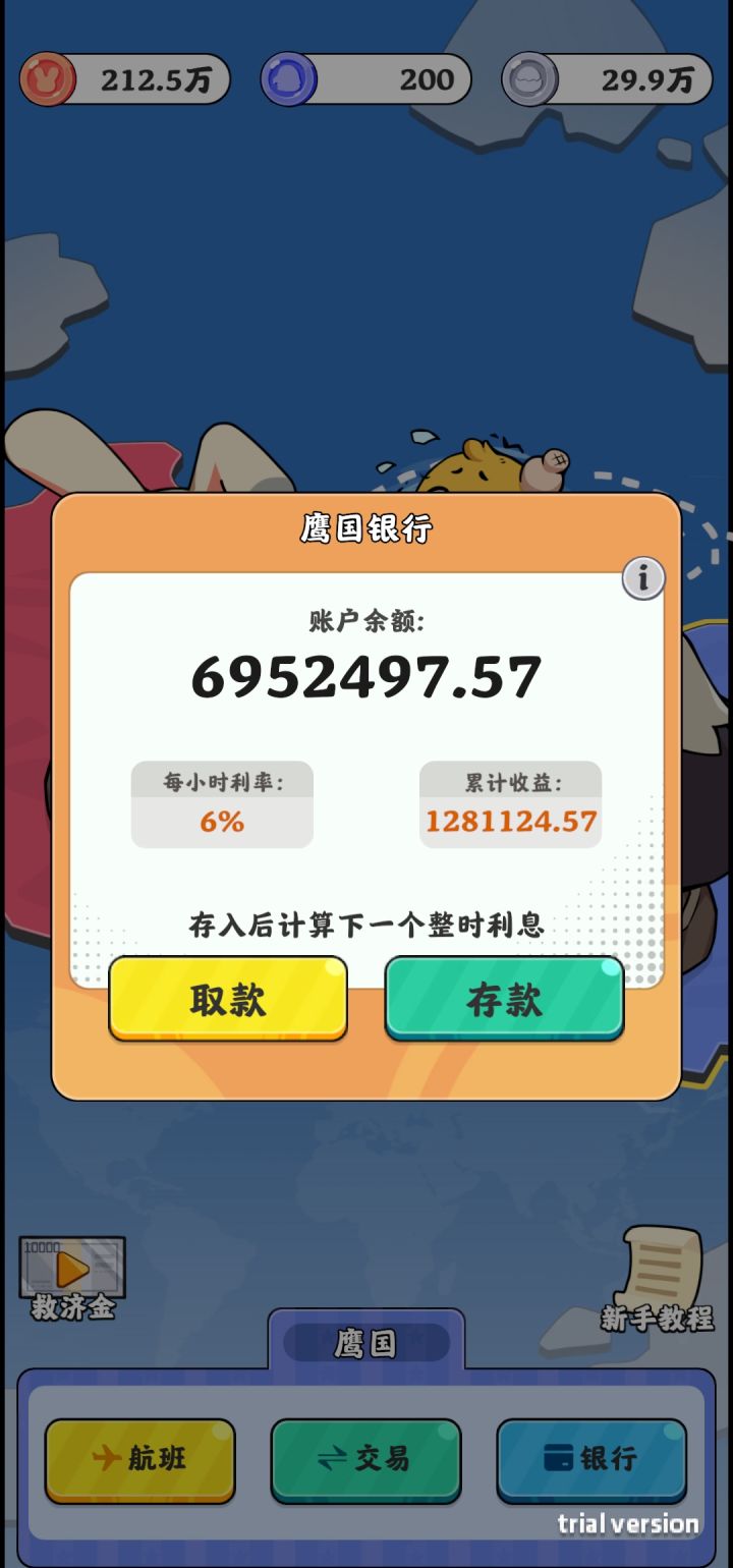 接着是,不能在鹰酱那边存太多的钱,容易被吞,制作者给大家开了一个小玩笑,把游戏评分拉低了2分(鼓掌!!!)
