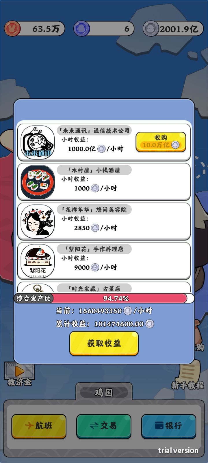 鸡国财产收益不符450亿+200亿+75亿+30亿+16亿+4亿+1.4亿=731.4亿可是显示只有16.6亿收入这是数据问题呢?还是机制问题?还是bug?不懂,求各位大佬解释一下#游戏讨论