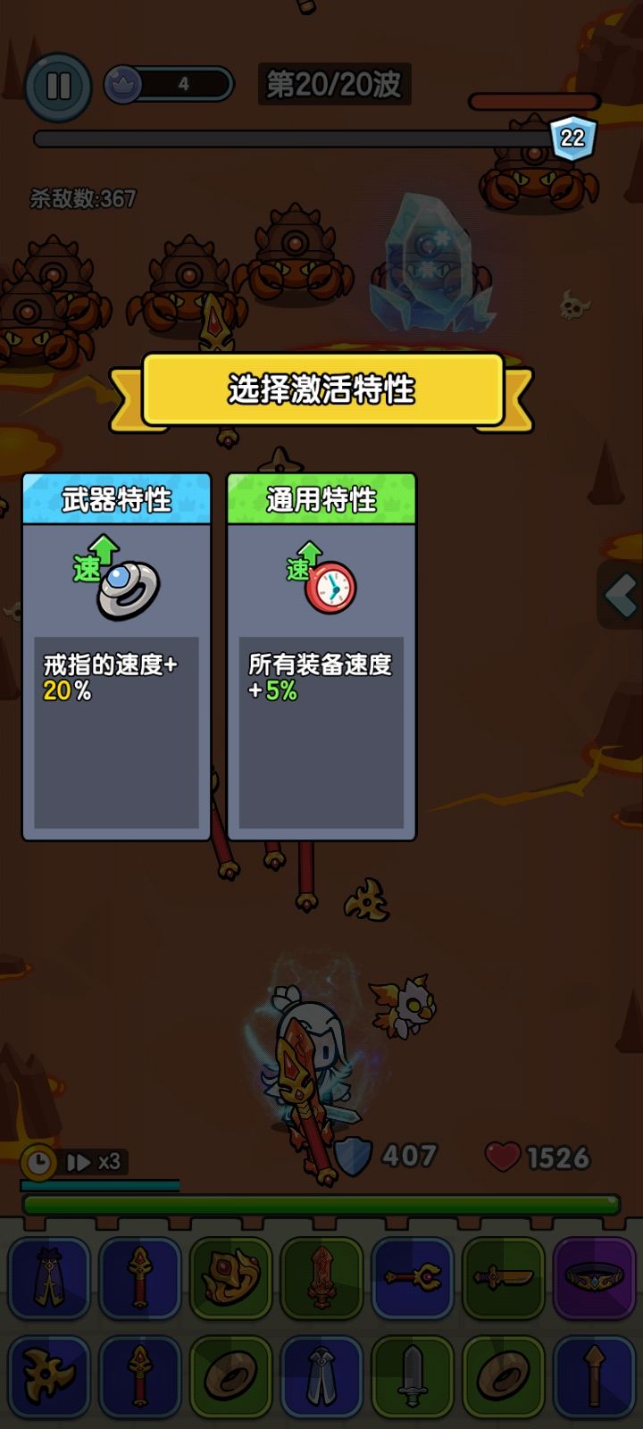 4.升级装备会污染卡池,请谨慎升级,游戏中升级装备会解锁装备对应特效,但这种特效并不是在闯关中立即生效的,而是通过关卡内等级提升后三选一,因此与其说是解锁装备特效,不如说是解锁了特效卡池,解锁后的特效才会在闯关中能够被选择到,但目前装备没有重置功能,因此如果无序升级,就会出现你想带物理装备,但每次特效三选一里都有大量魔法装备特效的可能。