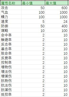 武器:攻击、谋略、命中、反击、暴击、致命、增物伤、增法伤、增谋伤 铠甲:气血、防御、反震、抗物伤、抗法伤、抗谋伤 头盔:控制、抵控、精力、增物伤、增法伤、增谋伤 护腿:气血、防御、反震、抗物伤、抗法伤、抗谋伤 项链:精力、抵控、命中、躲避、反击 靴子:速度、躲避、反击、抵控