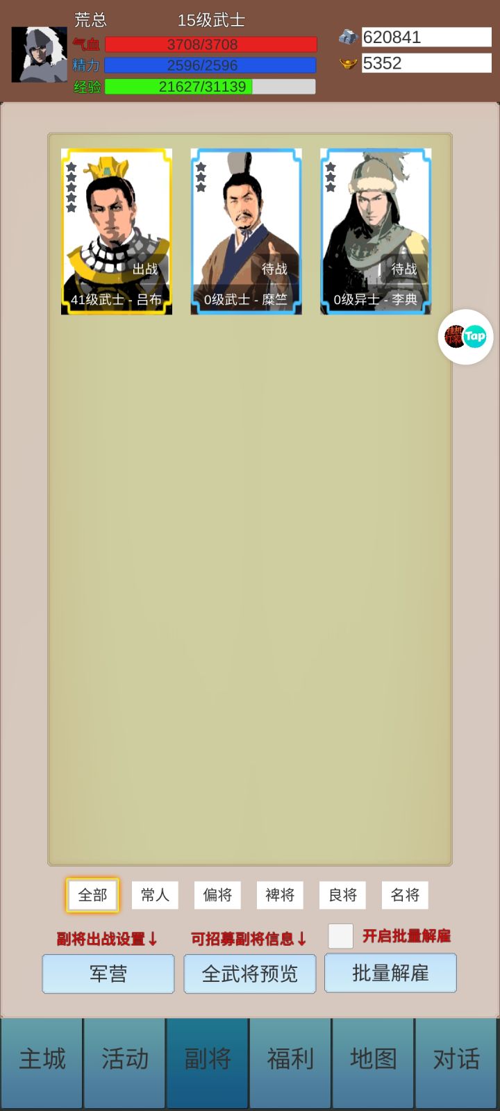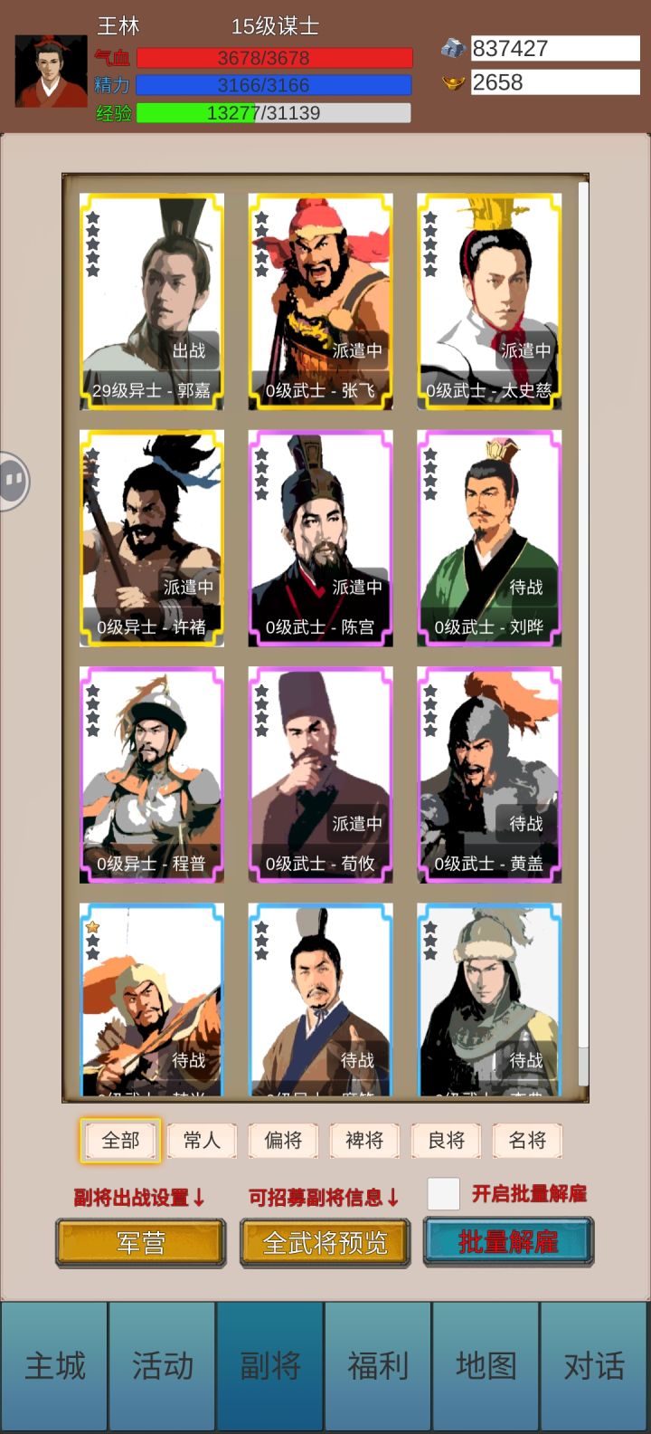身为萌新的我说下打装备副本的思路,50级就可以开启困难难度的套装副本,建议开始带两个谋士,注意的是速度一定要达到850以上才好,这样才能比对面快先手控制,控制之后单独一个个打伤害就好了,不要放群攻就完事了[表情_吃瓜]炼狱不知道,还没90级,到时候再说……强调一遍[表情_微笑]真羡慕v10可以免银子治疗,我还要白嫖好久[表情_叹气]