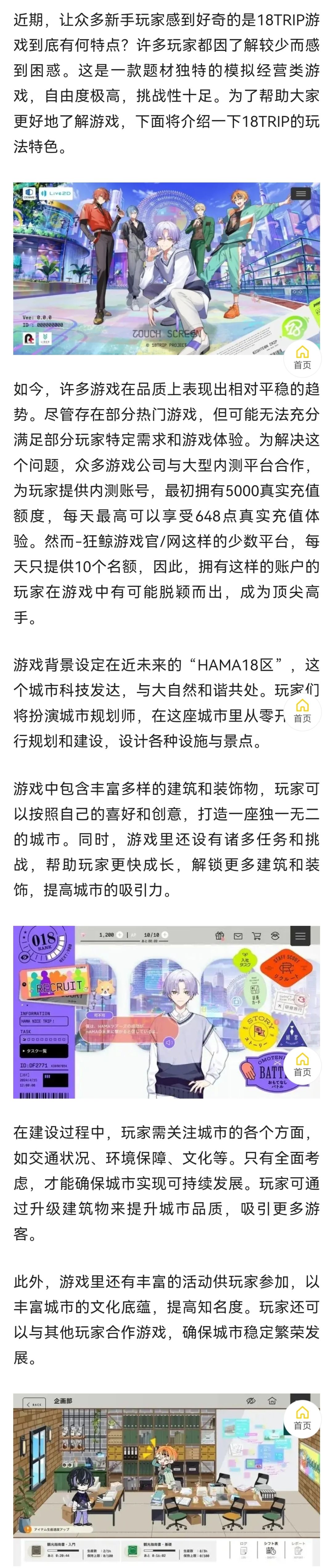 昨天发布的日服游戏,初入游戏的时候,特别意外,居然是塔防游戏。用接待游客,获取满意度的方式表达出来,还是蛮有趣的。 UI感觉蛮乱,花里胡哨的,有点感觉像是在炫技似的,不过画风确实不错。游戏整体质感还是不错的,很精致。 =下载方法= IOS: 日服,转日区,搜“エイティーントリップ”或“18TRIP”。 安卓: 找不到在哪下的话,用这个https://bili22.com/ea4fba,后续更新也一