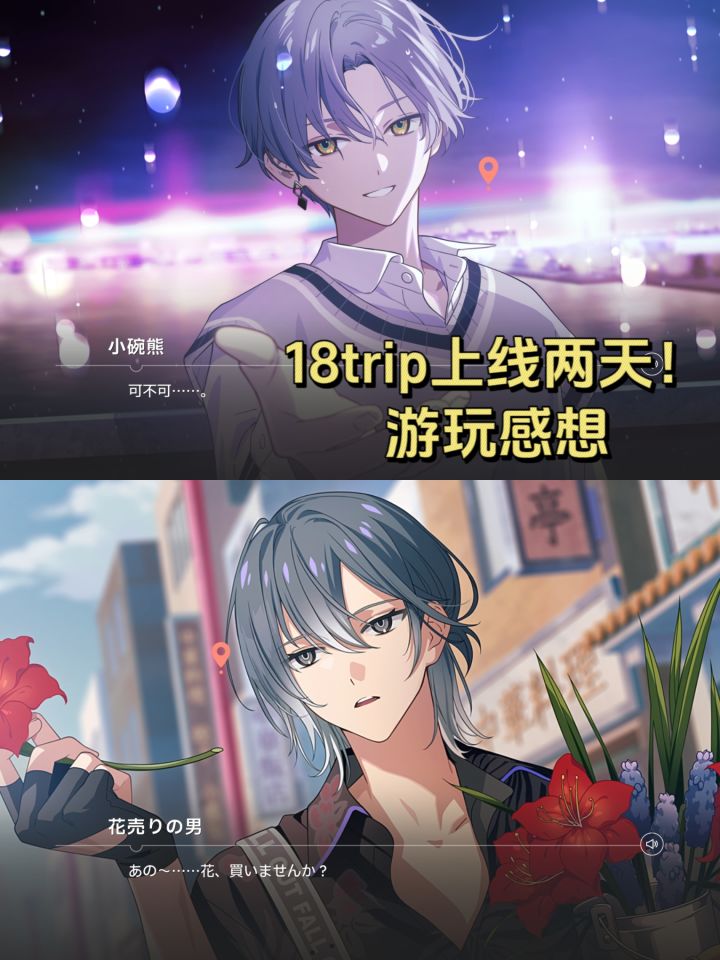 💗18TRIP💗iOS/Android💖游戏总评模拟经营类手游吧,和一群美男共同振兴18区旅游业!💘游戏特点——主人公玩家在游戏中扮演的角色,其性别的选择随意,男女皆可,不会影响之后的剧情发展;——特色塔防风「款待式战斗」 操作简单(有点像保卫🥕);「研修旅行功能」 让喜欢的组合前往旅行,收集土产与研修报告,建设经营这类型的,我个人一直都很喜欢,规划类游戏整体下来的感觉,到游戏后期