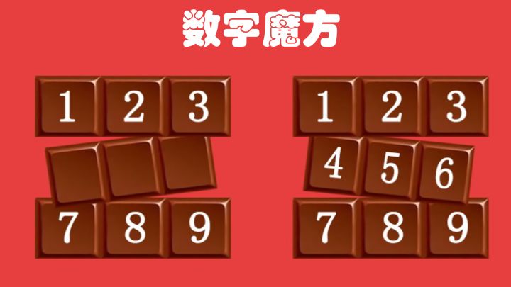 由巧克力块制作的3D拼图,可以像魔方一样旋转数字,从3*3到20*20,一共有18个关卡,请将他们按顺序拼好吧。