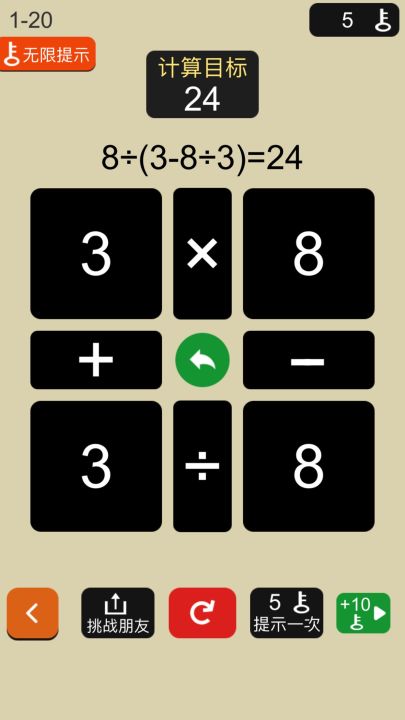 24点口算王------简单上手的扑克数字游戏,颇有难度的关卡题目。