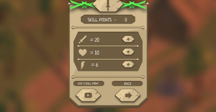 属性点可以全加攻击,体力后期可以加一些(省得跑圈去回复体力),前期没必要加体力和血量。可能有人会疑惑,不加体力还好说,为什么不加血量。这里给出解答。除了属性点可以给人物带来提升之外,还可以买装备,就在村口那两个大叔那属性点只加攻击的原因就在此:+10攻击的剑售价1500,+20血量的护甲售价1000。所以属性点加攻击的性价比更高。(这里因为我已经买了这两件装备,所以价格就不显示了)之