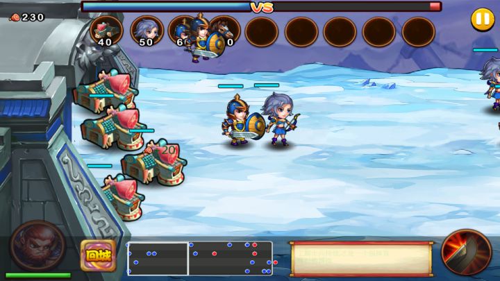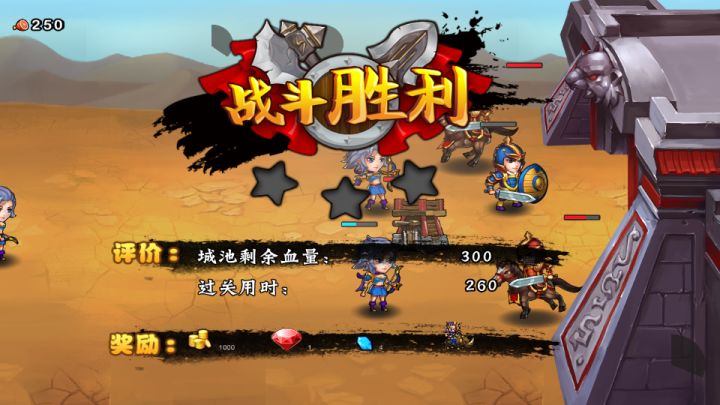 过关显示奖励了金币钻石和一个红宝石这样的东西,但是除了红宝石可以提前解锁兵种,其他的都找不到使用途径。然后第一个地图第六关,对面的弓骑兵扎堆冲过来,我方士兵就两三个,也没有强化,拿头打?魔鬼游戏,居然给人玩的?