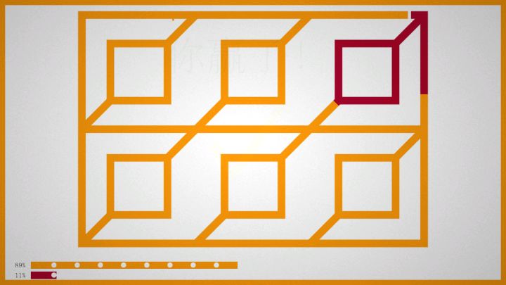线条也能玩出兵法?玩家“”评论说:《线之禅》第一关教的是合围,第二关则是清剿,第三关是抄近道,第四关是堵截……总结起来就是一句话:赢得了时间,就赢得了比赛。在《线之禅》中,颜色会沿着线条快速前进,直到碰上另一种颜色或到达终点为止,你的目标就是让自己的颜色占据最多的百分比,一开始会非常简单,选一个合适的点就行,接下来更多的颜色会加入竞争,你还要用上绳子、橡皮、刀等各种道具。看似随机的运动,其实是战