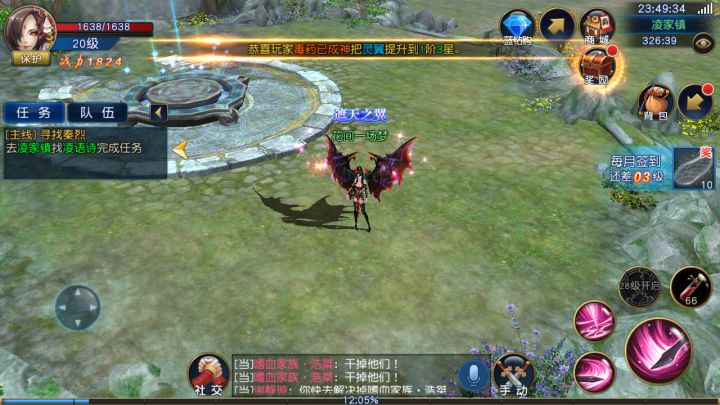 ……一路点点点,很快到了20级,一个玩家都没碰到,大概是升级太快,都去了别的地图。…………不过游戏还是不错的,人物阴影,倒影都很精致。……最让我感动的是,20级在凌家渡,一段优美的音乐瞬间让我回到了很多年前的岁月。我仿佛又一次站在了万花的花海“浪兄,我又来看你了”“浪兄,我走了,以后可能不会回来了”我永远记得你的那句话,【百年云烟只过眼,不为繁华易素心】知道吗?后来我还给前面添了一句【
