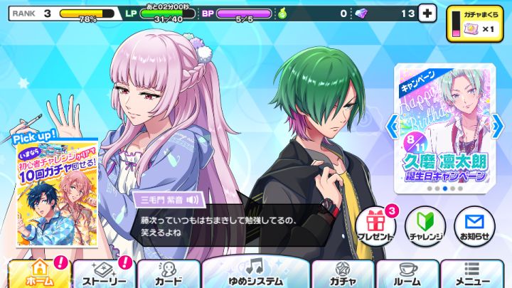 技能也看不懂,主线剧情还好都会念出来,不念就大部分看不懂了,还没有人,都是女装大佬那对和老吵架的那对支撑着我玩下去_(´□`」 ∠)_