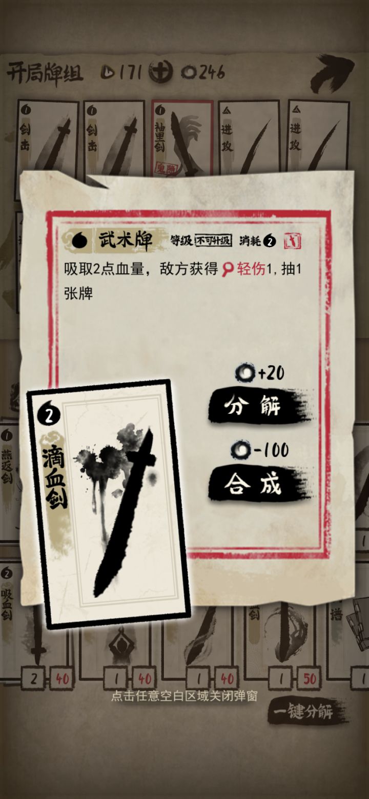 玩了这么久在此写一个关于屠夫的一个流派简易思路, 里面卡牌或者阎王这些类似的都会限制武术牌和法术牌,而限制基本牌的特别少,所以保证这个玩法不会有太难受。由于屠夫卡组玩这个流派续航不太好所以第一次玩选了一个由于这个流派需要尽可能的拿不卡手的本牌所以开局的“进攻”不要遗忘为了前期过渡我一般会拿个平步,这样存两个回合可以打一套爆发核心牌来了,为了一直能过卡得有三个草鞋,最好最好有三个装备槽,前期升