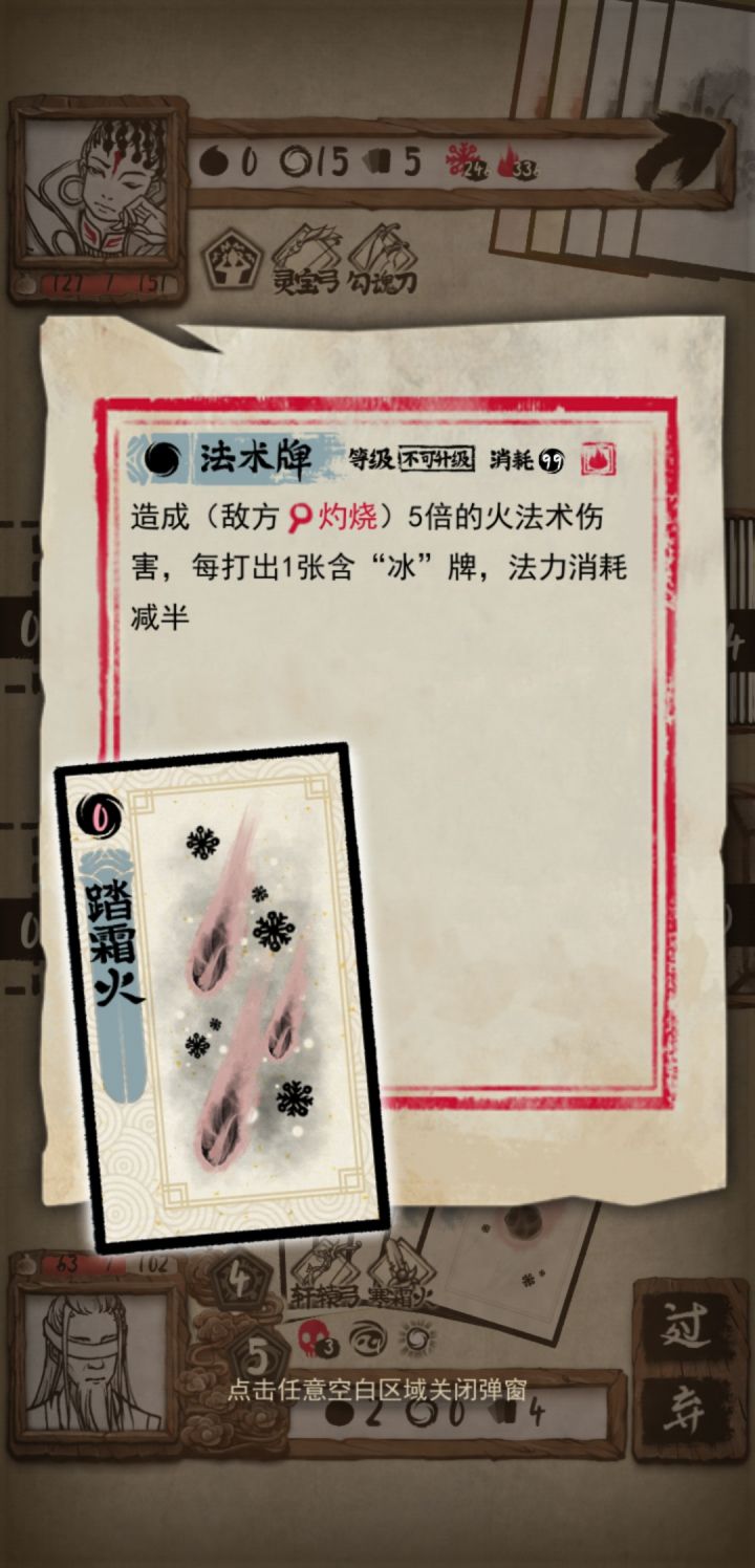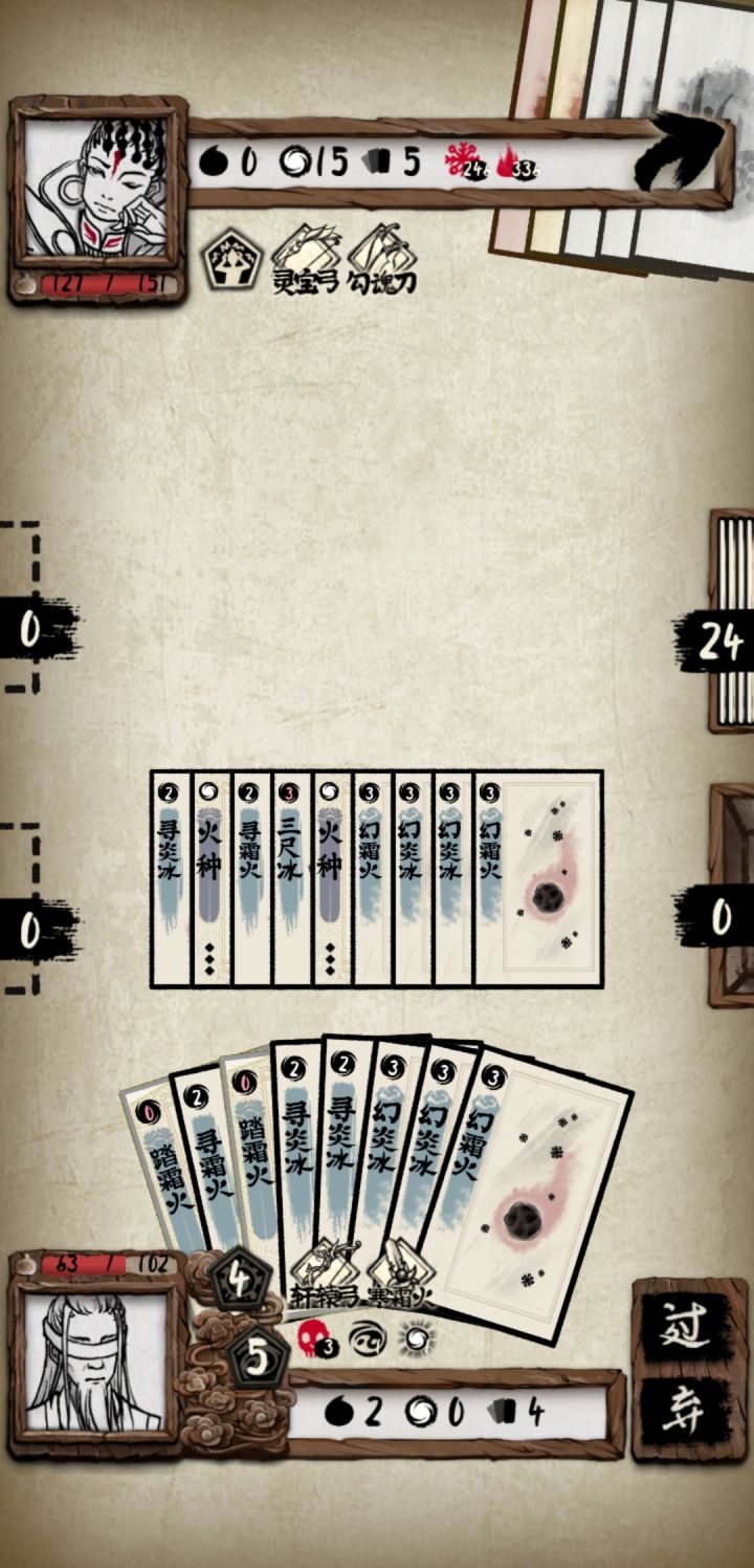 ◇剑客玩大牌师一直赢不了,直到解锁了道士...第一回合,阎王还没出招,就已经盯着他手里的返照了◇剑客最大的问题就在于抽牌机制,牌堆抽完它不会自动刷新,导致需要非常大量的牌来支撑她的过牌打法。道士则只需要3张:幻霜火、幻炎冰、三尺冰。(说真的,剑客防御靠燕尾服一点一点的叠甲;输出靠一点一点加起来。道士输出是连续翻倍,指数级增长;防御就更加离谱,直接寒冰一挂,物免。)◇可能道士最大的敌人就是罗汉拳了,但是全点血量的法师无所畏惧