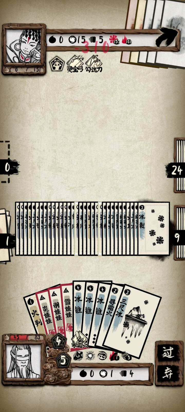 当然两张剑技也凑合,就是不太理想。毕竟不是没一回合都能早早的抽到两张这个,难免精力见底。