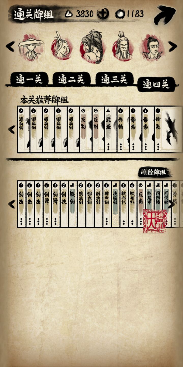 第一次写攻略,采集各路大佬的攻略合成。写得不好,还请各位温柔点剑客出门: 剑技或铁剑,剑舞或滴血剑卡牌收集: 养精,剑舞多多益善,一切有剑字的卡牌,可以拿一两个地躺拳或六合拳ps: 尽量遗忘掉进攻屠夫出门: 草鞋,十绝斩或还虚卡牌收集: 第二关和第四关的红蘑菇用来复制草鞋,有三张就够了,如果还能复制就复制还虚,一切基础卡牌,奔跑可以拿一两张ps: 不用遗忘进攻和尚出门: 一张暗