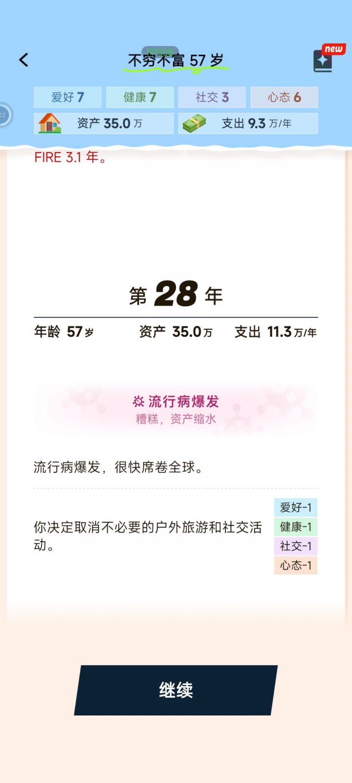 挺好玩的,就是主线基本一样,问你投不投资结不结婚,然后爆发流感和战争。趣味性是有的,主要是看骰子的随机性。