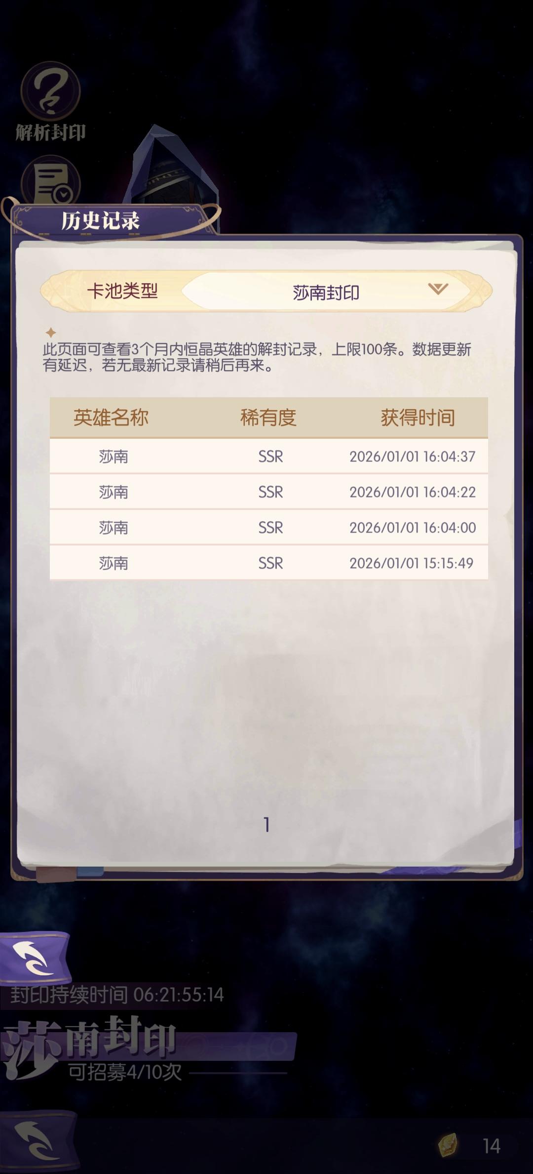▌限时礼包码『元旦福利』:XHZMG2026YD● 内含:「恒晶」*188、「SR灵魂碎片」*500(有效期截止:2026/1/14)『圣诞福利』:1225XHZMG2025● 内含:「钻石」*1225、「24h经验药水」*2、「SR灵魂碎片」*500(有效期截止:2026/1/24)『双十二福利』:2025XHZMG1212● 内含:「钻石」*1212、「英雄召唤券」*2、「特殊