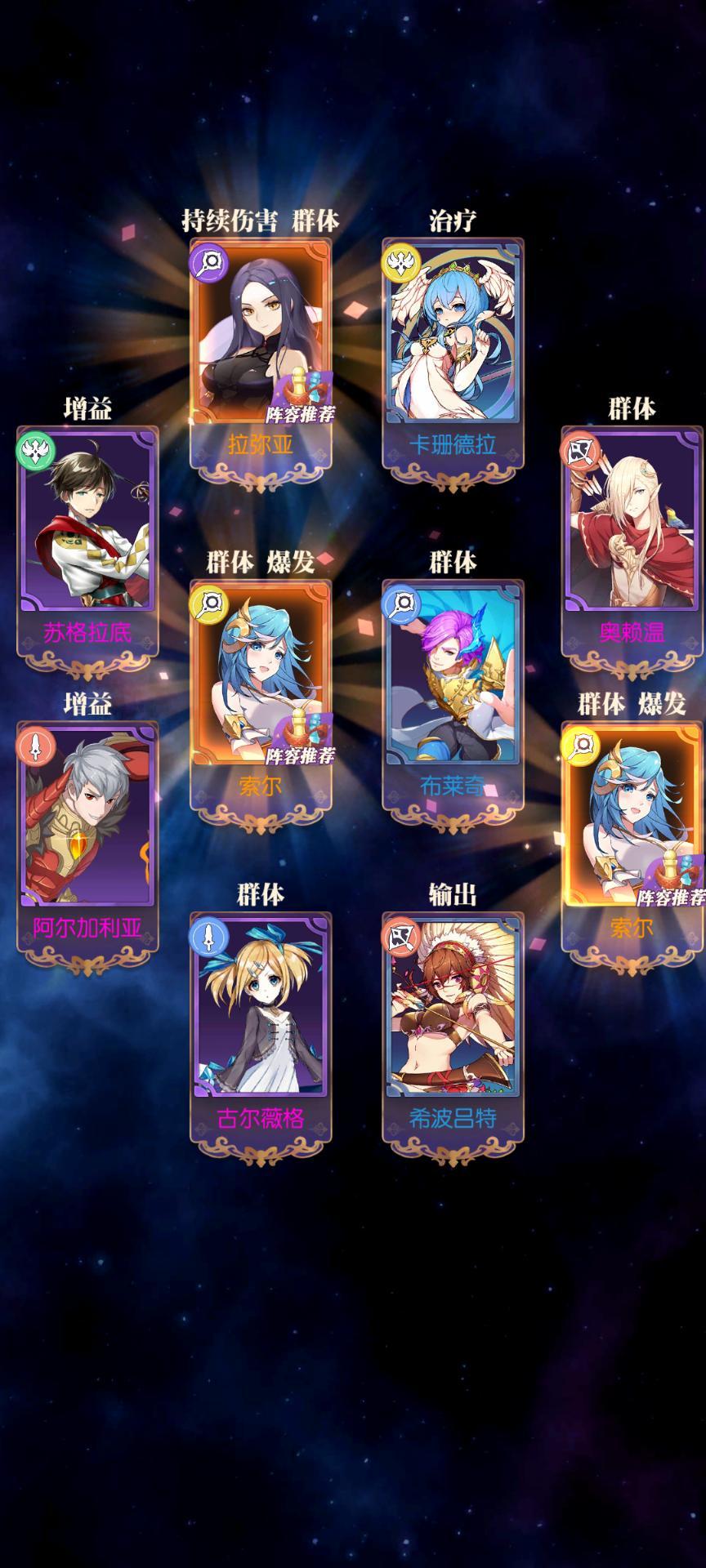 舵手卢 - 苏鲁特(火剑物理钻石限定)外科医生乔 - 云翘(光贤魔法钻石)杀戮武士唐 - 塔索(光法魔法恒晶)厨师山 - 安妮(暗刺物理恒晶)提督胡 - 苏丽珂(水弓魔法恒晶)*金色品质达标 *没有指定英雄就尽量凑属性、职业、物理/魔法、品质 *恒晶钻石没有特殊意义,方便大家找角色