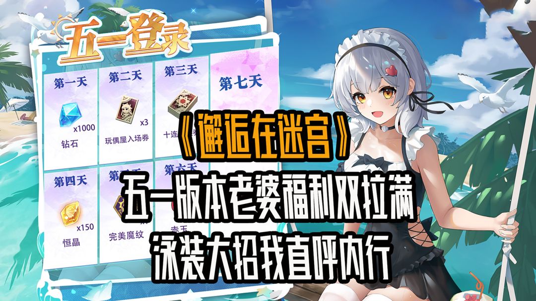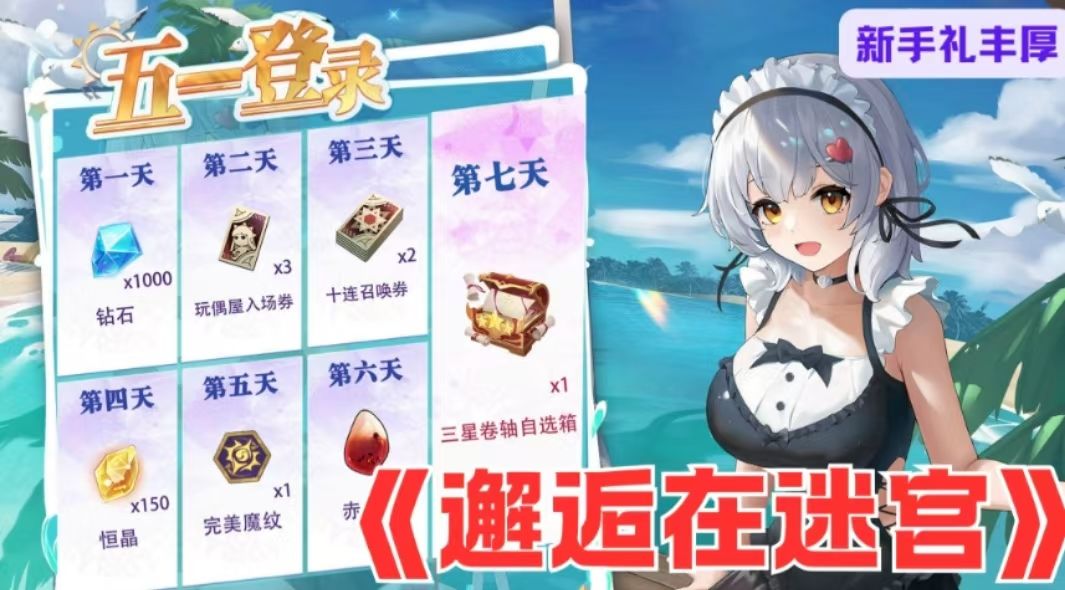 《邂逅在迷宫》二次元竖屏放置手游来袭!不肝不氪,新手礼丰厚,五一福利多,签到、红包、泳装返场超诱人,新英雄登场,速来开启迷宫冒险。