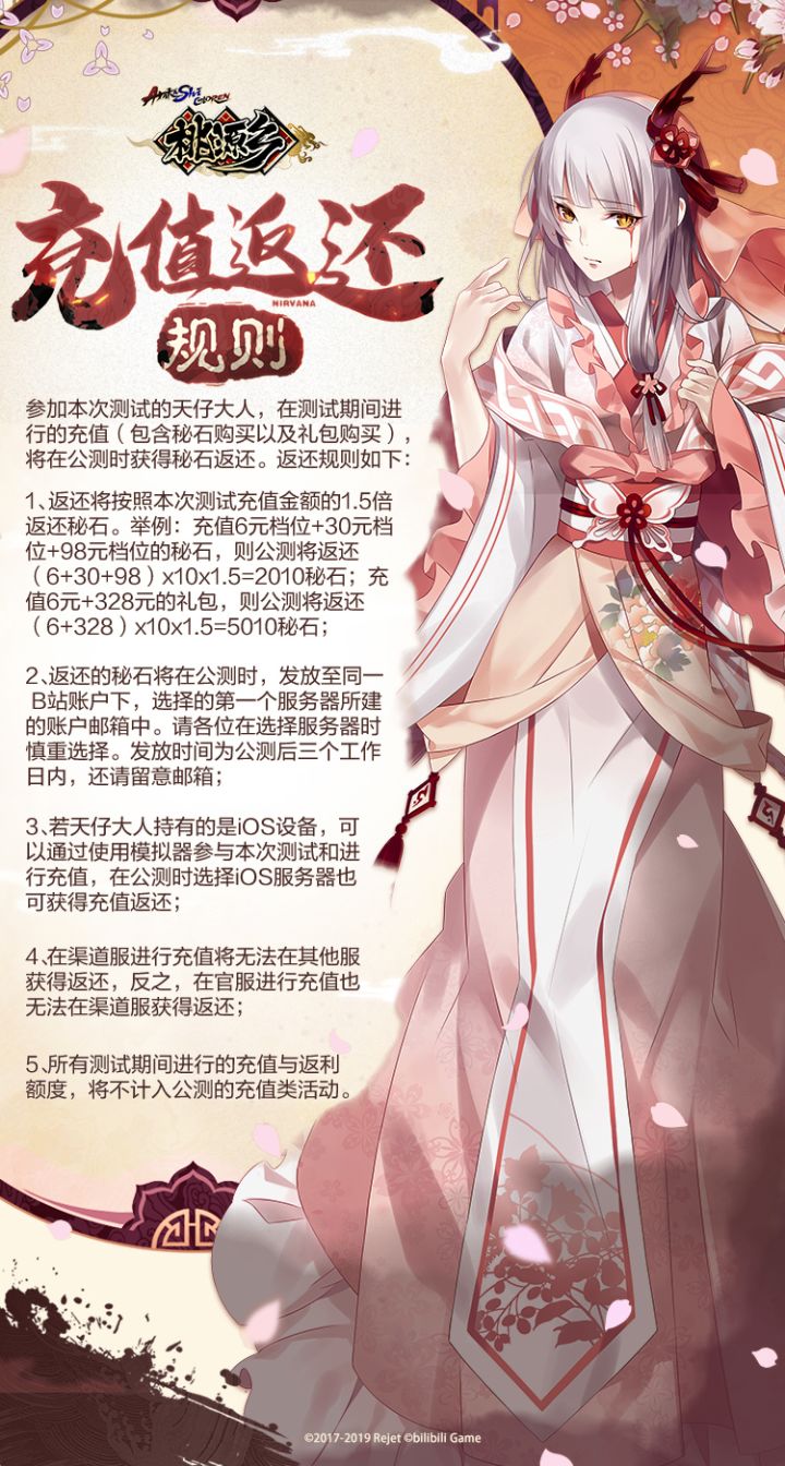 涅槃测试将于11月26日正式开启!本次测试类型为安卓端不限号计费删档测试,测试期间游戏可免费下载安装,同时开放充值功能。测试期间充值金额将按照以下《涅槃测试充值返还规则》在公测时返还,请天仔大人知晓并妥善保管您的账号哦~