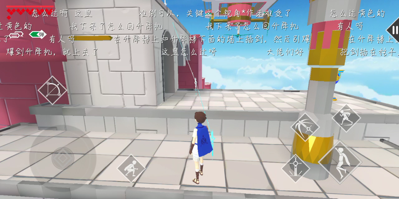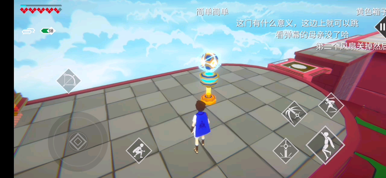 好不容易过了前面的,而且已经到了旁边高台,激活了高台那个球,大白也去了传送门那里,视频可见底下没有大白,然后我就莫名其妙直接就又重新开始了,而且没有箭可以射,我寻思那我就蓄力砍吧,结果砍了第二个大柱子没碎,我死了再重新复活就是一直这样了