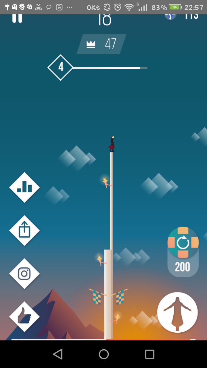 没想到育碧的bug都卖到这里来了...自从复活后开了一个减速就一直维持着减速的状态,无论复活几次这个buff都没掉,就一直苟活到了400+......第一次堆那么高还是蛮爽的啦,终于可以听到后面的bgm了hhhhhh