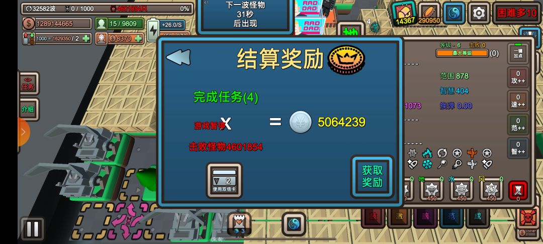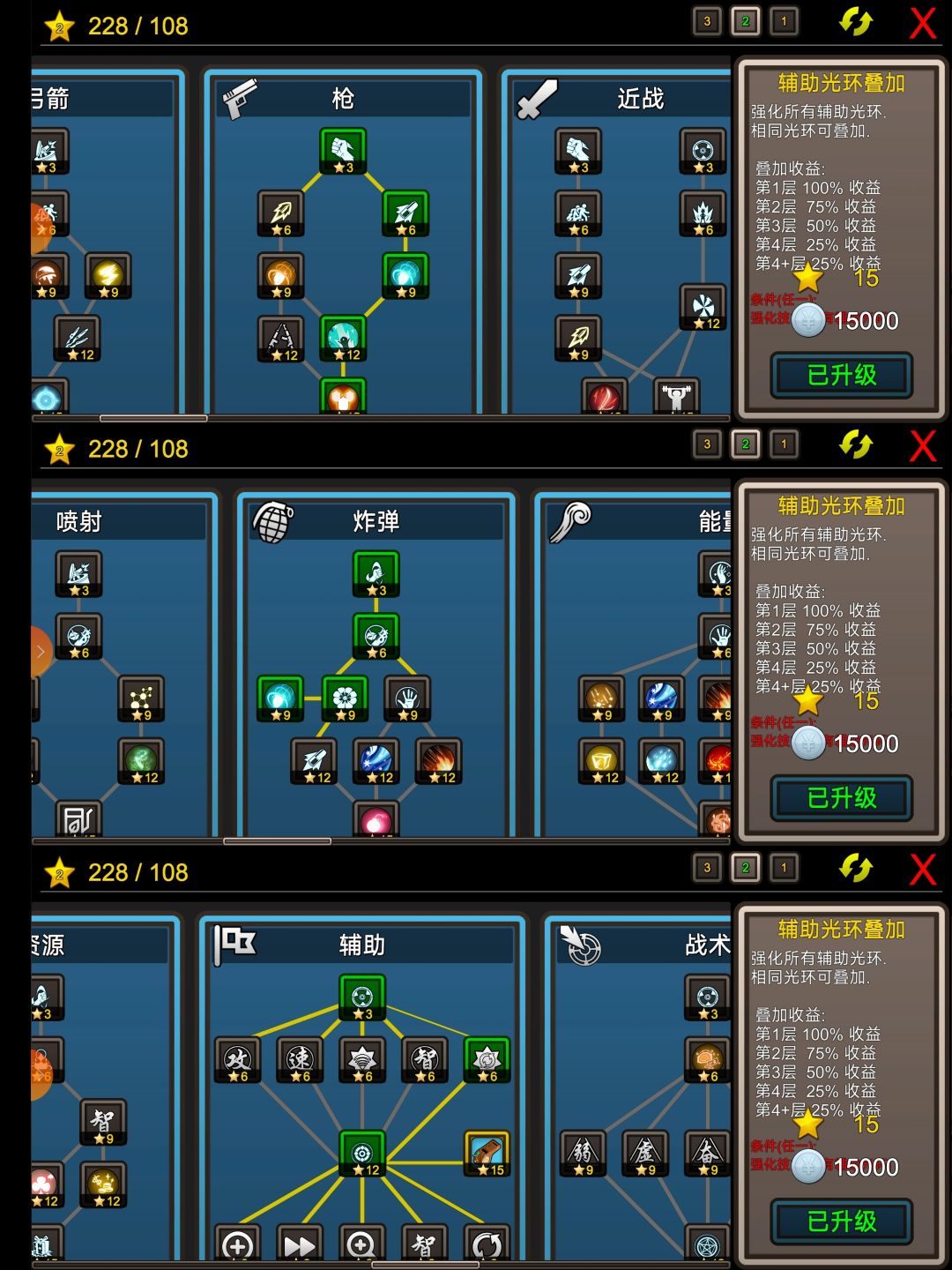 刷十万层最关键是金币等级够高,可适当氪一下金 [表情_狗头][表情_狗头][表情_狗头][表情_狗头][表情_狗头][表情_狗头][表情_狗头]。 一级出库300金币,每级多900金币。3300波之后可全程4倍速自动出怪挂机,不需要任何操作。每小时可打570-580波。 一、需要的科技和战利品 ①银币科技 全局:多怪10,四个主动全满,幸运至少三级(如图一) 枪:全满,包括极 资:等级上限、智慧满