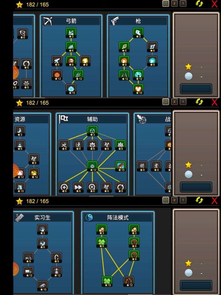 毕业照照镇楼进入正题,过完了所有图的三星任务。就是有189颗星。就要肝肝帝之星,也就是困难图666波会奖励的一个星,满星210,主要方法有养枪,万毒,弓法,炸资等,当然小众的电与键盘也可以666,别的需要大家探索了,我这里因为手机的原因主要用枪与炸资,银币科技尽量重要的点满吧,加点如下,星不够,枪就可以先不点近一支,炸资就油与其它分页,到时退游戏切换科技。枪的参考加点:炸资的参考加点:最简