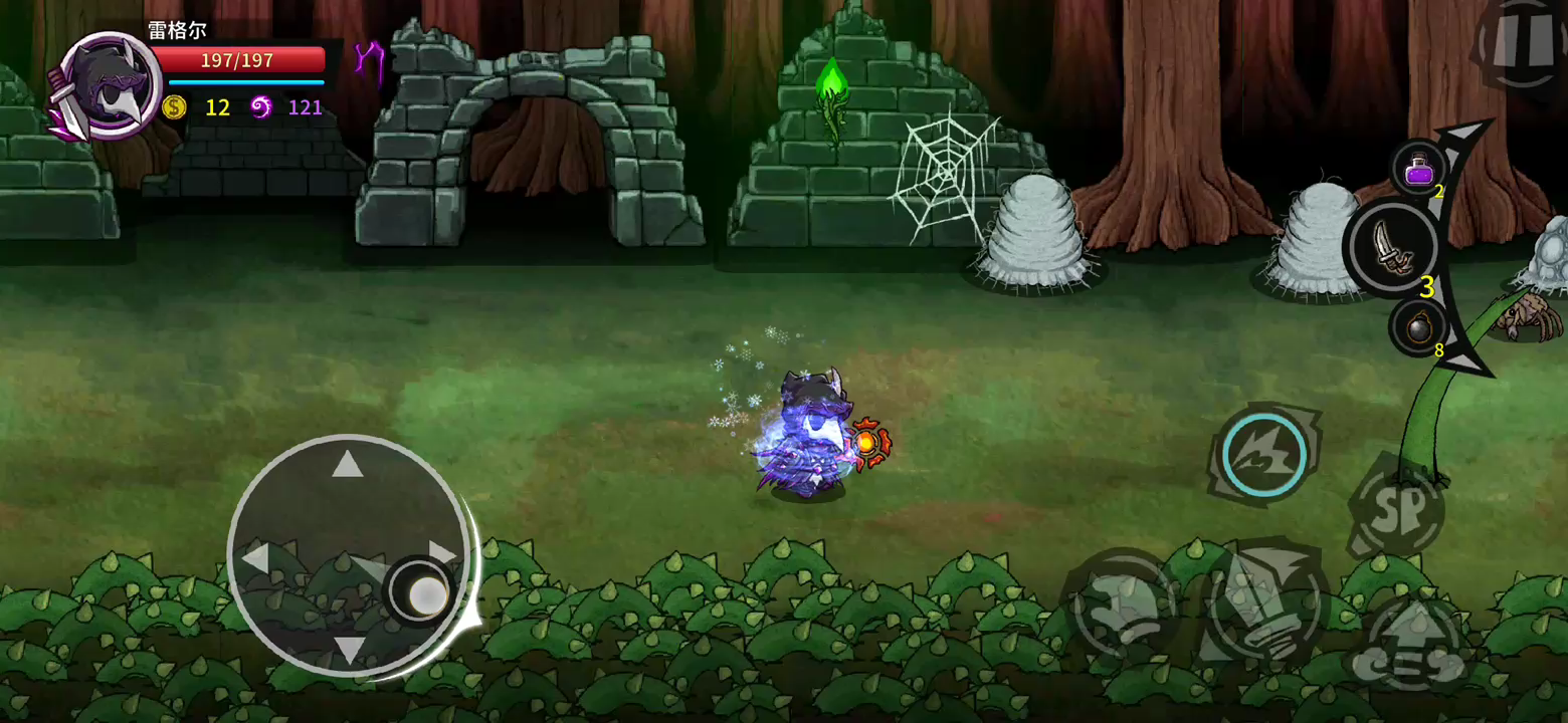 法杖跳跃攻击会多出一段距离 可以用来消耗藤蔓和毒花