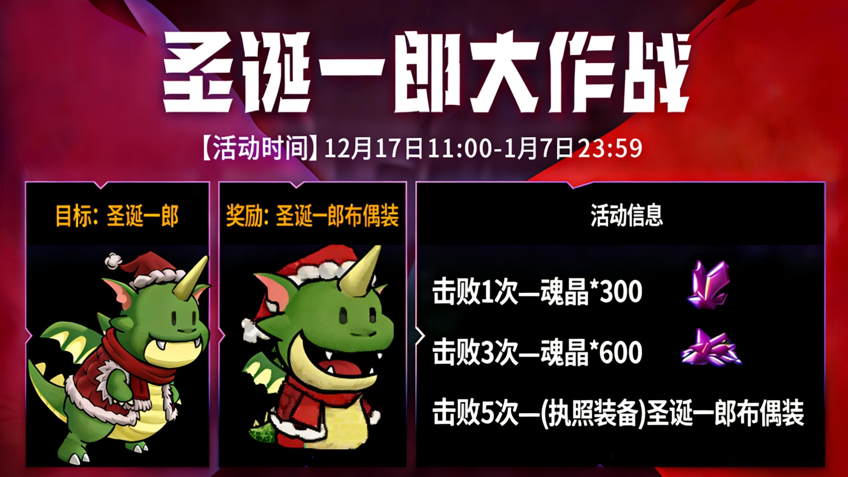 亲爱的宝子们,双旦临近,大家都有什么安排呢?小蓝龙也为宝子们准备了丰富的活动和奖励,快来城堡过节吧!1. 圣诞独眼巨人悬赏圣诞节来临,好像有穴居人一族在举办圣诞派对?宝藏猎人快来一探究竟吧!【活动规则】第一阶段:使用圣诞树大剑击败圣诞独眼巨人1次,奖励-公会宝箱钥匙*1;第二阶段:使用圣诞树大剑击败圣诞独眼巨人3次,奖励-公会宝箱钥匙*2;第三阶段:使用圣诞树大剑击败圣诞独眼巨人5次
