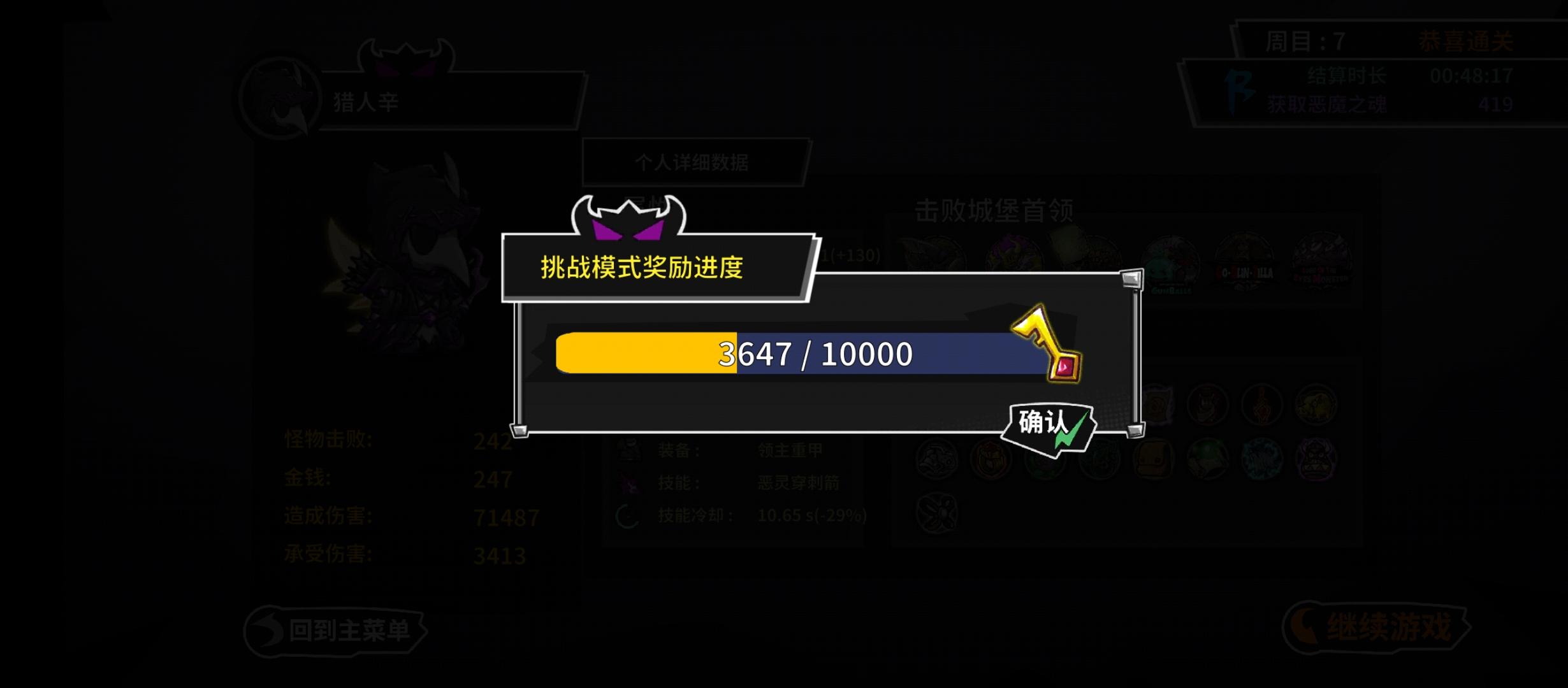解锁小金人后,去小金人那里选三个挑战,分别是图片中的这三个。容错极高,90%小怪两刀死,Boss30秒之内必死。这套方案,噩梦随便过,保底六百魂。这不得吃,我直接吃