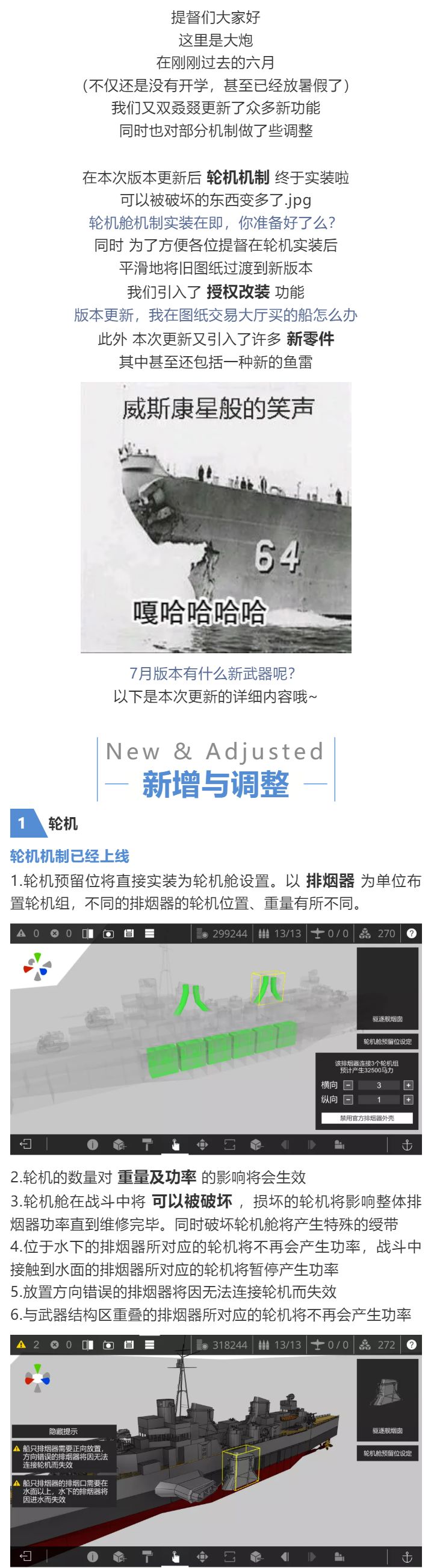 开发日志112:0701版本新武器及新支援船只