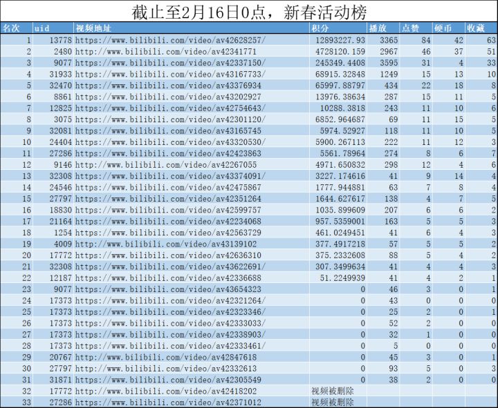 春节已经接近尾声了,提督们准备好节后恢复到上班上学的日程中了嘛?不过在此之前,工艺战舰新春活动bilibili视频大赛还有不到5天就要结束啦~我们将会在19年2月20日23:59分统计出本次大赛的冠军,并发放奖励物资新春规则活动规则请见活动贴,奖励清单:综合评分第一名5000战略物资第二名、第三名3000战略物资第四名、第五名2000战略物资第六名~第十名1000战略物资成功提交视