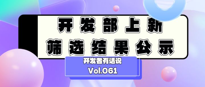 开发者有话说061:开发部上新筛选结果公示