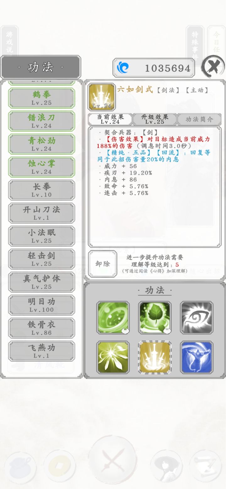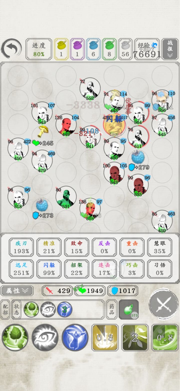 99闪躲,回复内力剑法,35慧眼。轻松刷图