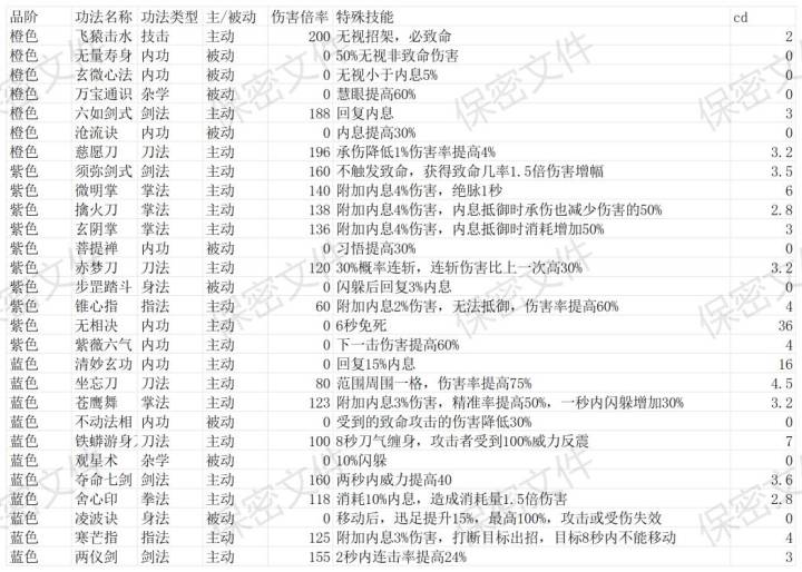 高级秘籍数据及特效
