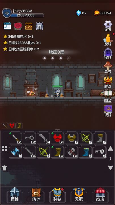 超级解压的像素挂机游戏, 通过不同武器的搭配释放不同的技能.