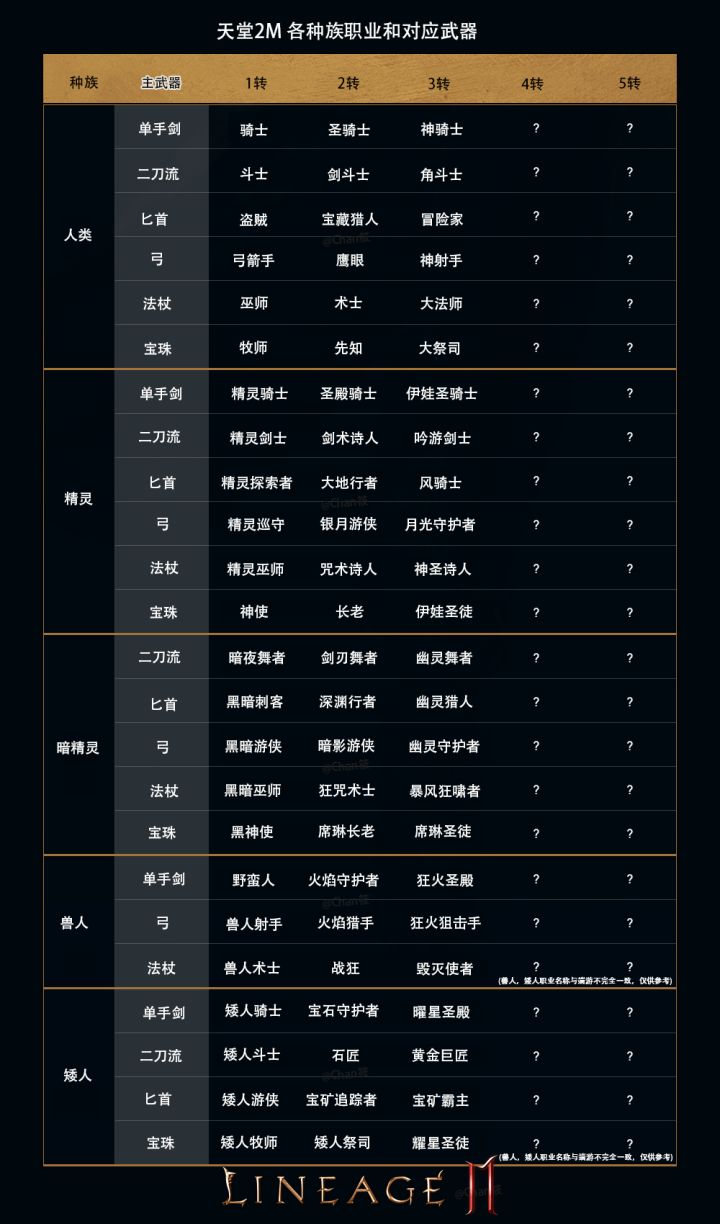 天堂2M各种族职业和对应武器(中文版)