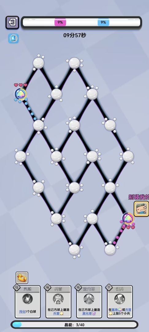 《别碰我的球》是一款轻松多人即时对战游戏,将传统rts简化至极。指尖轻轻滑动,调派你的球球军团,运筹帷幄,扩充地盘,应对变幻莫测的场面,在正确的时机猥琐发育,或果断出击!