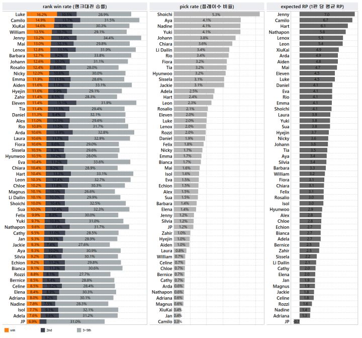 实验员们大家好!以下是5月20日 ~ 6月1日之间的排位赛胜率统计。限于各熟练度的胜率,“伊娃”不包含在相应指标之内。1、全体2、狮子以上3、天赋 / 熟练度