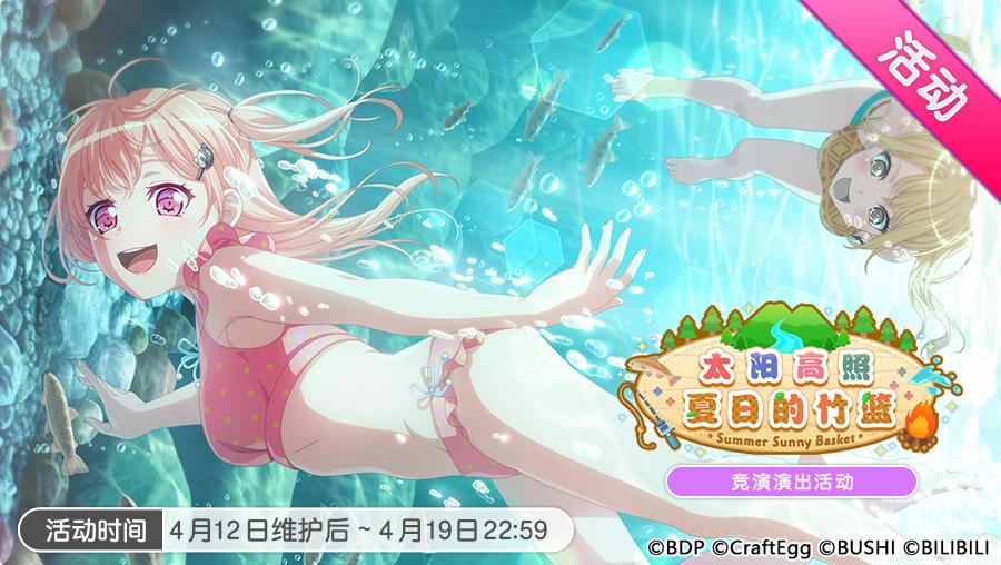 各位亲爱的BanG Dreamer: 4月12日维护后,「太阳高照 夏日的竹篮」竞演演出活动、★4出率双倍的「KIRAMEKI Festival 招募」活动将同步开启。同时,游戏内还将开启FES开启纪念充值优惠活动,各限购档位均附赠增量星石~ 此外,维护后将开启「KiraFes开启纪念vol.1&vol.2 特别礼物赠送」活动,活动期间登录可共计领取「星石×200」和纪念道具,还将追加原创歌曲
