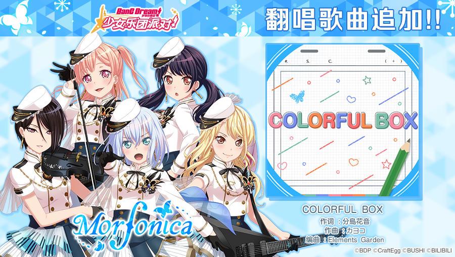 ★歌曲追加★ 曲名:COLORFUL BOX 乐队:Morfonica ※追加的翻唱歌曲现已上架CiRCLE乐曲商店,您可以使用音色水晶交换获得~