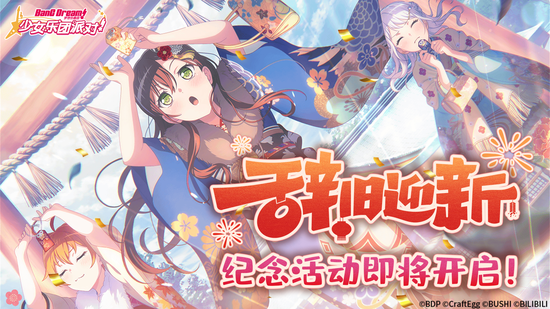 各位亲爱的BanG Dreamer: 年关将至,辞旧迎新。为了迎接2024年的到来,CiRCLE哔哩店将开启各类特别活动,等待各位BanG Dreamer的参与哦*:ஐ٩(๑´ᵕ`)۶ஐ:* 庆典期间,游戏内将开展登录奖励活动、选择乐队成员们的新年贺卡、新年抽签等特别活动,还将追加多首纪念歌曲! 游戏内还将开启新年特设页,复刻期间限定区域,追加新年特殊语音! 参与各类活动,与乐队成员们朝气