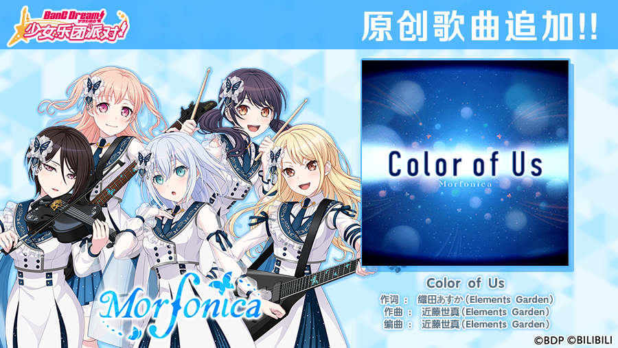 ★歌曲追加★曲名:Color of Us演唱:Morfonica※追加的原创歌曲现已发放至您的礼物箱,还请您登录游戏领取~