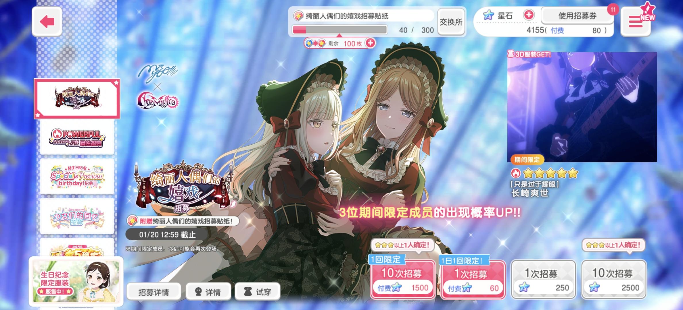 各位亲爱的BanG Dreamer: 1月9日维护后,活动期间登录游戏最多可累计获得2500个星石奖励!此外,还有全新限定成员、特别表情贴纸及特别活动故事等精彩内容现登场!点击图片,一起来看看活动日程吧~今后也请多多支持《BanG Dream! 少女乐团派对!》!