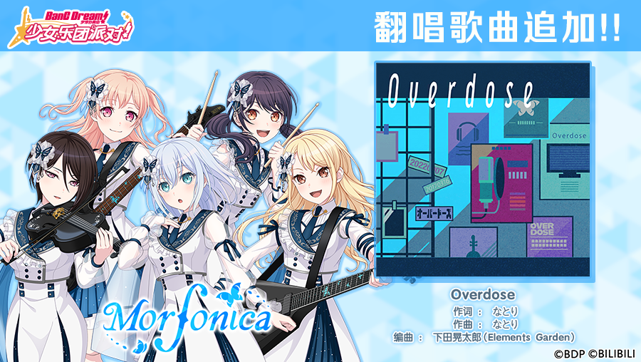 ★歌曲追加★曲名:Overdose演唱:Morfonica※追加的翻唱歌曲现已上架CiRCLE乐曲商店,您可以使用音色水晶交换获得~