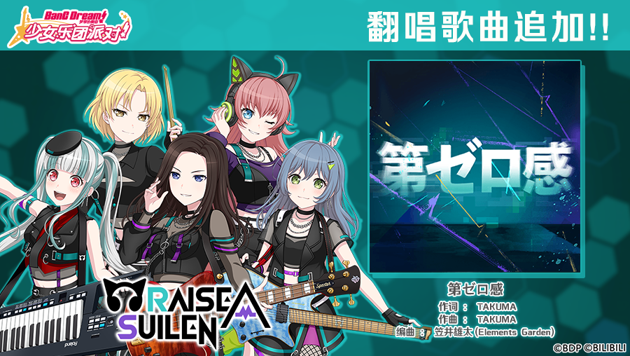 ★歌曲追加★曲名:第ゼロ感演唱:RAISE A SUILEN※追加的翻唱歌曲现已上架CiRCLE乐曲商店,您可以使用音色水晶交换获得~