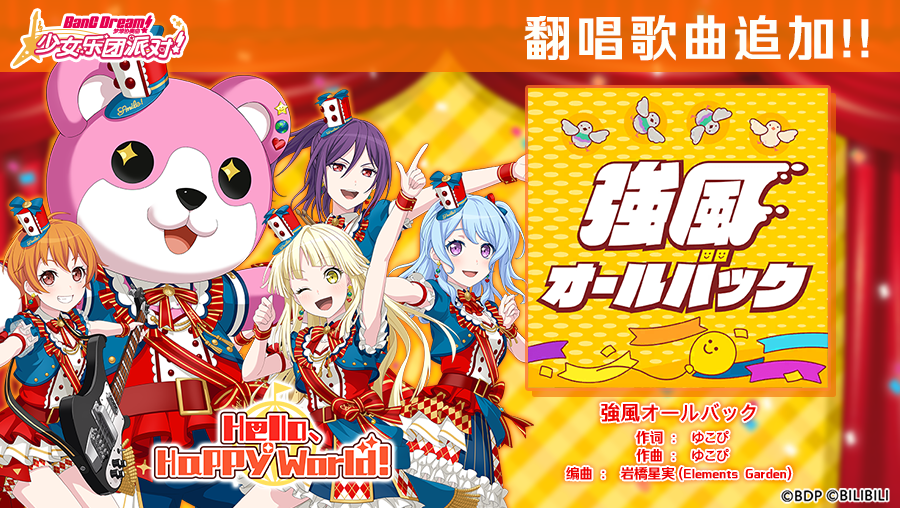 ★歌曲追加★曲名:強風オールバック演唱:Hello, Happy World!※追加的翻唱歌曲现已上架CiRCLE乐曲商店,您可以使用音色水晶交换获得~