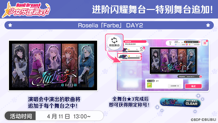 进阶闪耀舞台—特别舞台Roselia「Farbe」DAY2追加!