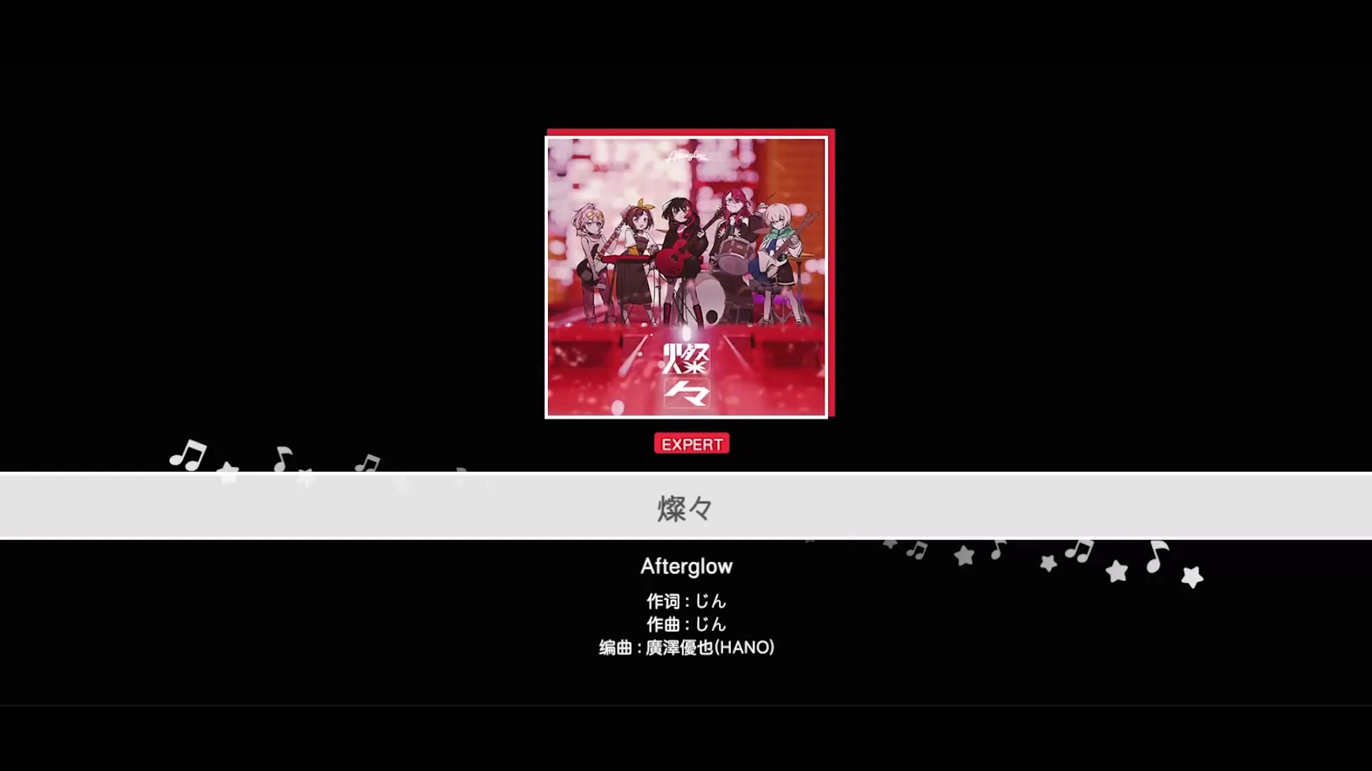 本期曲目是由Afterglow×じん联动特别企划而诞生的原创歌曲『燦々』,难度为EXPERT,节奏符速度:9.5。 ★歌曲详情★曲名:燦々演唱:Afterglow作词:じん作曲:じん编曲:廣澤優也(HANO)※录屏及歌曲详情仅供参考,实际请以游戏内为准。