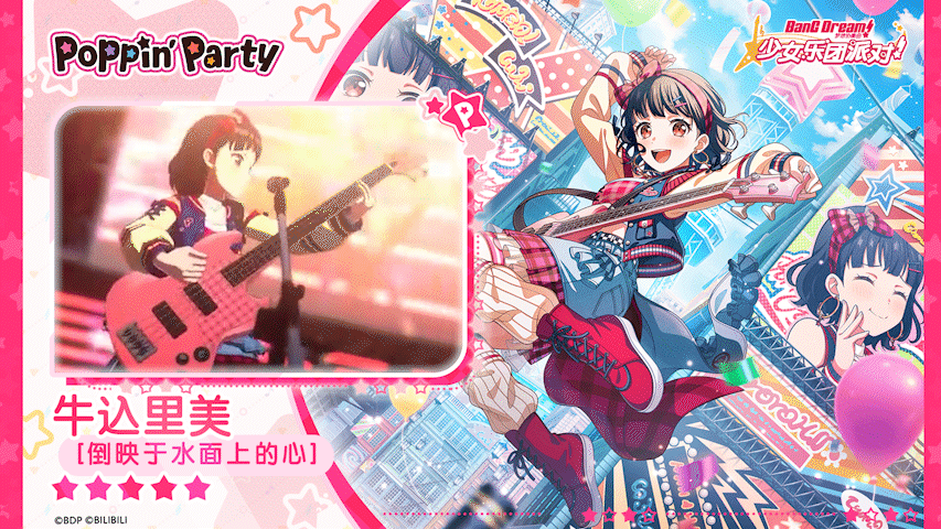 本期活动招募中以下新成员将加入卡池,活动期间出现概率提升♪★5 牛込里美[倒映于水面上的心]★5 山吹沙绫[站在热闹的桥上]★4 花园多惠[我能做好吗?]
